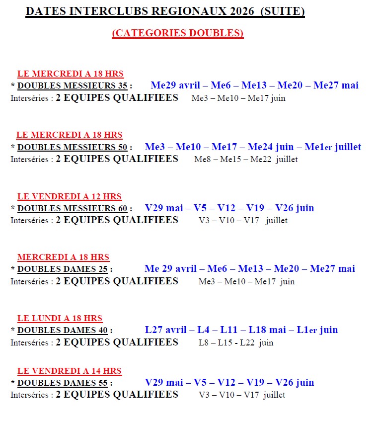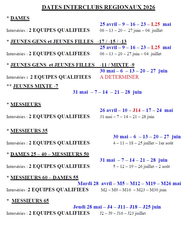 Les dates des Interclubs 2026 sont déjà disponibles sur AFT Liège
