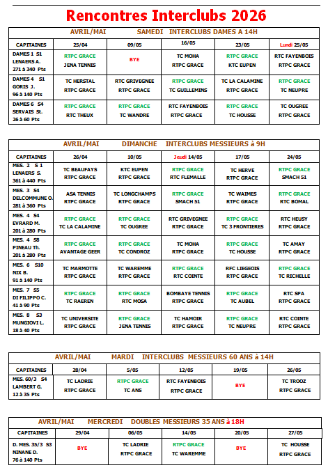 – Messieurs 1 et 2 : mardi 20 janvier à 21h